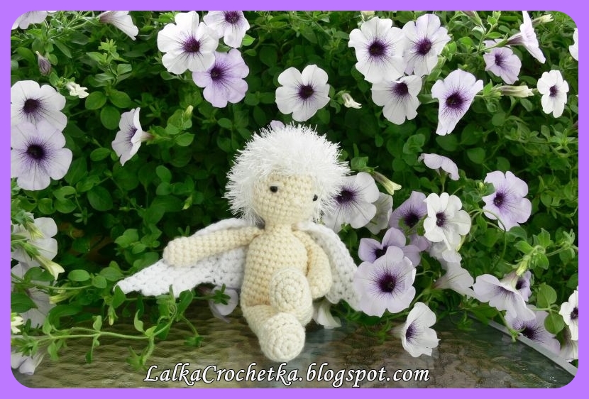 Kwiatowy Kupidyn ma 20cm wysokości stojąc, 15cm siedząc.